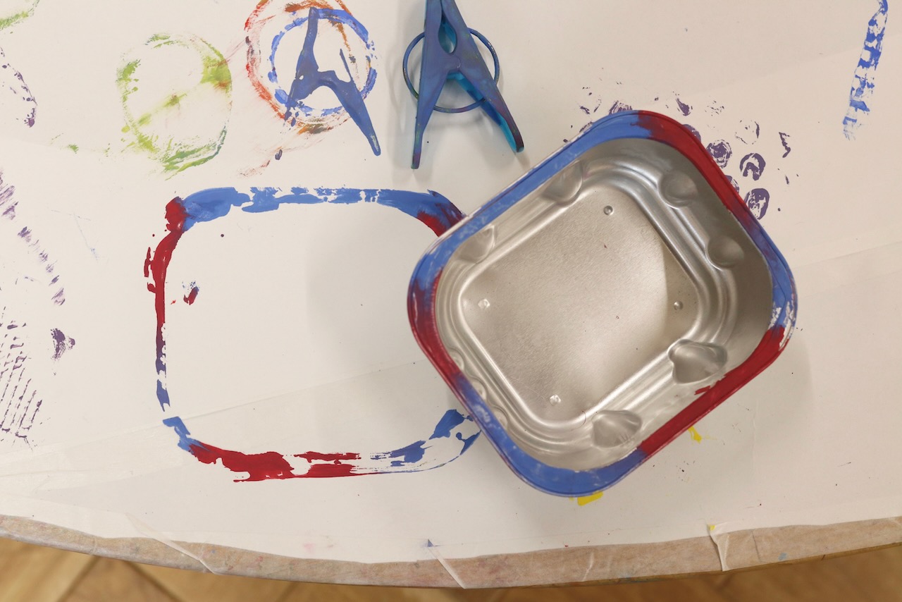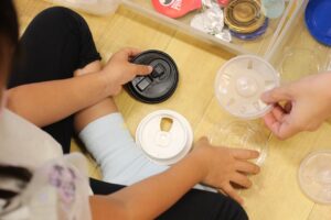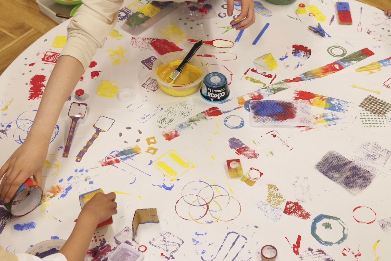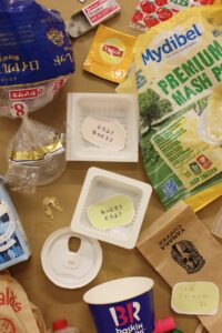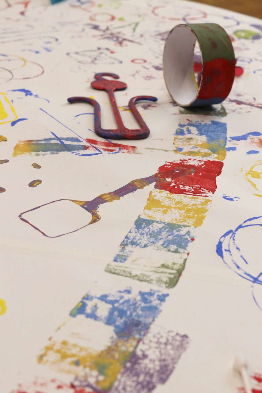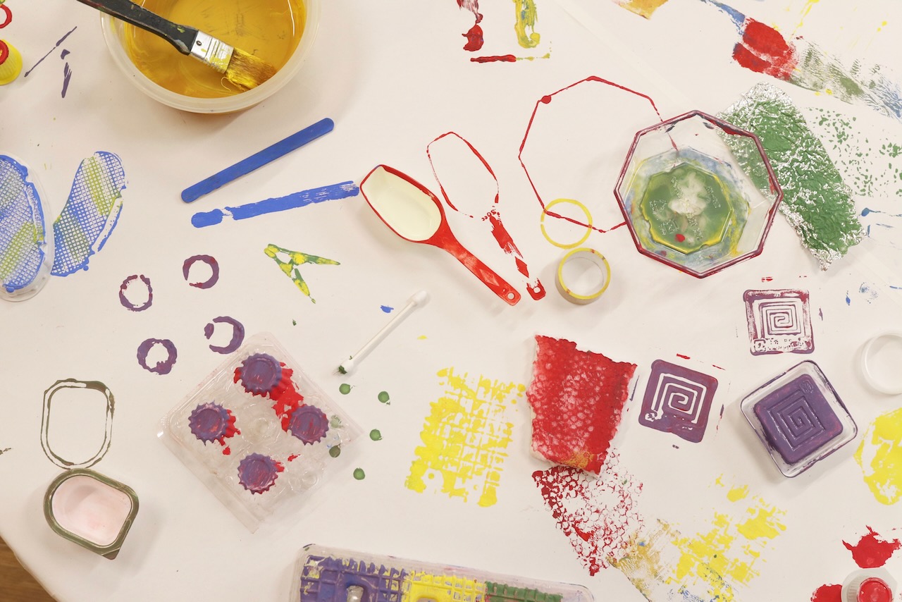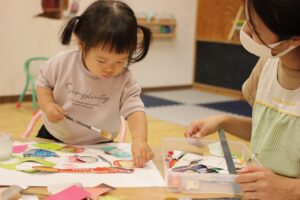 日々生活の中で使われるものや食品類の廃材は、意識して集めてみると思った以上にたくさん廃棄していることに気づくのではないでしょうか。空き箱やプラスチック製容器など、さまざまな種類がある廃材を「何かに使えそう」と集めても、うまく活用されないことが多くあると思います。それなら、廃材そのもののかたち、色柄、ロゴやイラストなどを観察して楽しんでみましょう。新たな遊びや製作イメージを膨らませる視点と発想が、子ども達の中に生まれるかもしれません。壁面装飾や造形準備で出た紙の端材、子どもが一度使ってくしゃくしゃになった折り紙なども集めておくと、コラージュ遊びも楽しめます。